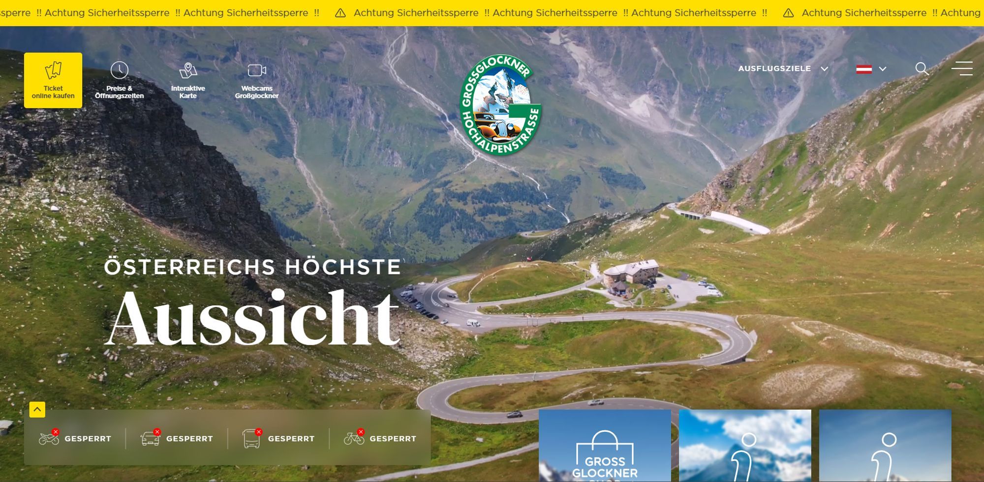 Een apart gedeelte in signaalgeel informeert je in één oogopslag of de Grossglockner Hochalpenstraße gesloten of open is, ook voor evenementen, of dat delen van de weg zijn afgesloten voor verkeer. Ook is het mogelijk dat de weg alleen voor bepaalde categorieën voertuigen is afgesloten. Nieuw is dat bezoekers aanvullende informatie krijgen over waarom bijvoorbeeld de weg of bepaalde trajecten gesloten zijn, of een precieze uitleg over wat bijvoorbeeld wordt bedoeld met ‘winteruitrusting’. Jarenlange ervaring heeft geleerd dat bezoekers deze informatie erg op prijs stellen.