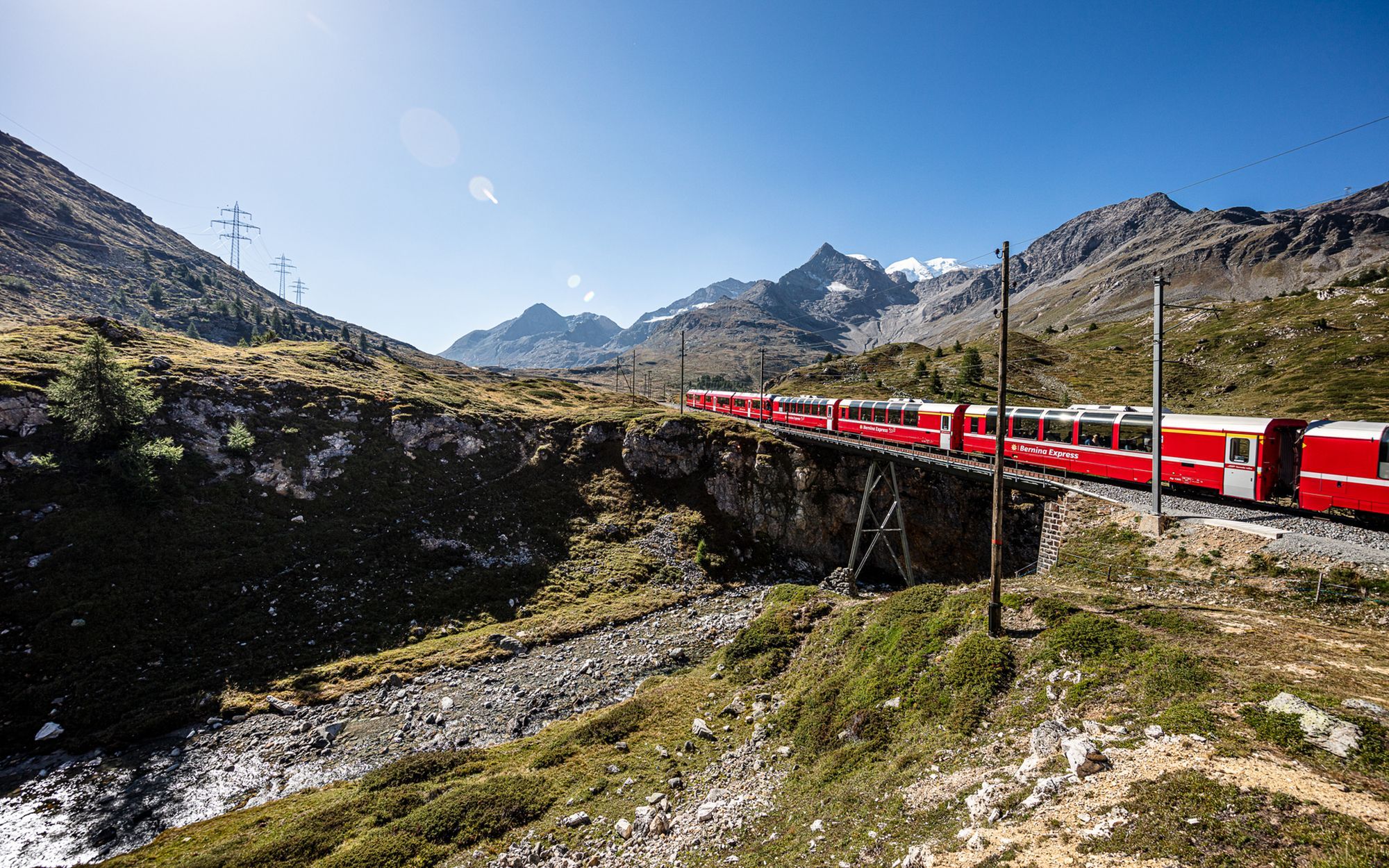 De reguliere Berninabahn behoort tot het Unesco-werelderfgoed en loopt van Sankt Moritz via Pontresina naar het Italiaanse Tirano. De route loopt door de Berninapas, langs de Morteratschgletsjer, het spiraalviaduct van Brusio en het Lago Bianco. De omgedoopte Bernina Wine Express rijdt van 14 mei tot 25 oktober 2024 door de Zwitserse Alpen. Op de speciale retourreis, die van dinsdag tot en met vrijdag te boeken is, kunnen treinliefhebbers en fijnproevers de indrukwekkende natuur ervaren door de moderne panoramische ramen van de Bernina Express.