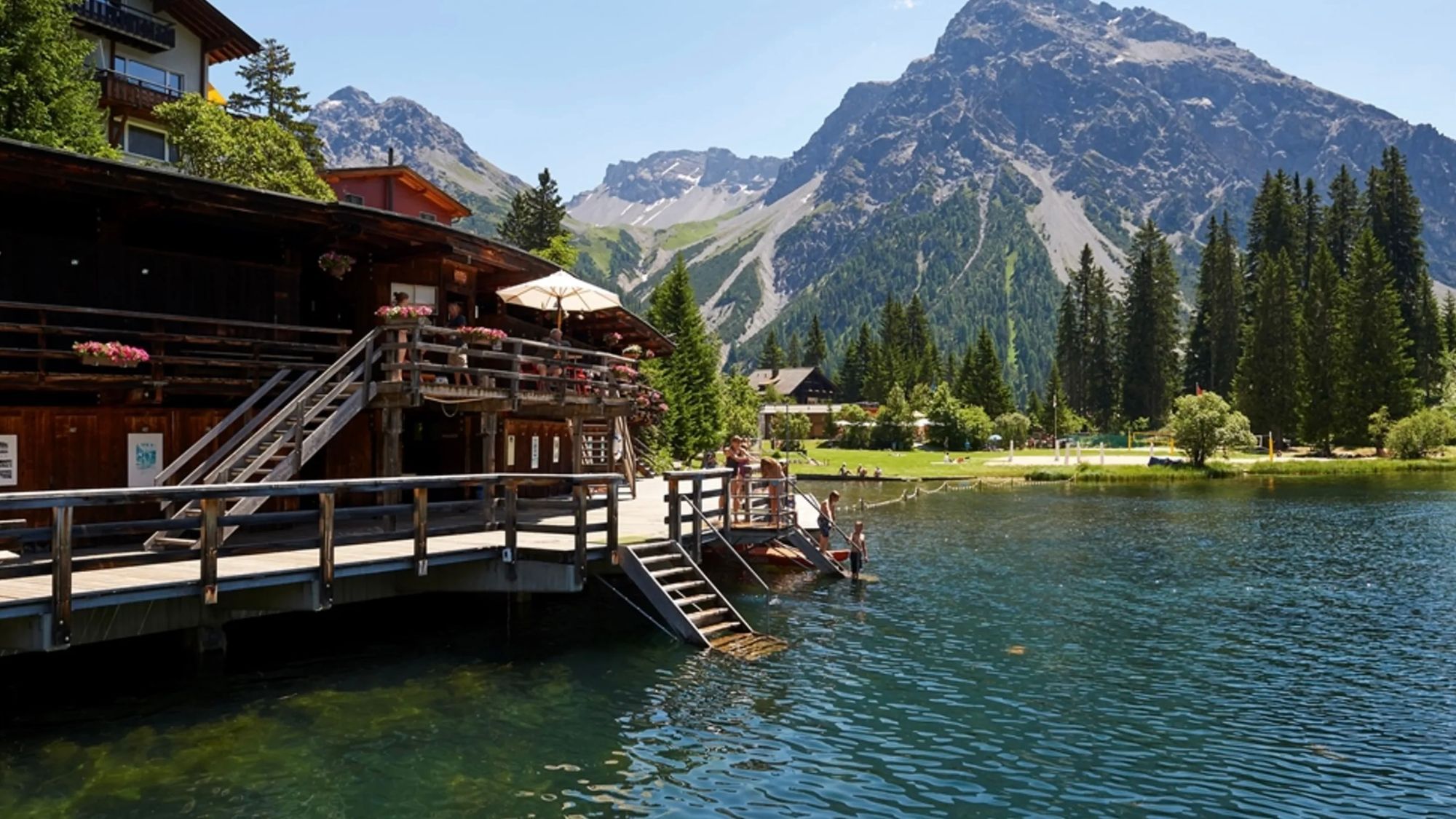 De Untersee is een natuurlijk zwemmeer op 1.698 meter hoogte. Je vindt er een lido met zandstrand, springplank, speelzone, kiosk en een klein multifunctioneel bad. Toegang is gratis met de Arosa All-inclusive Card.