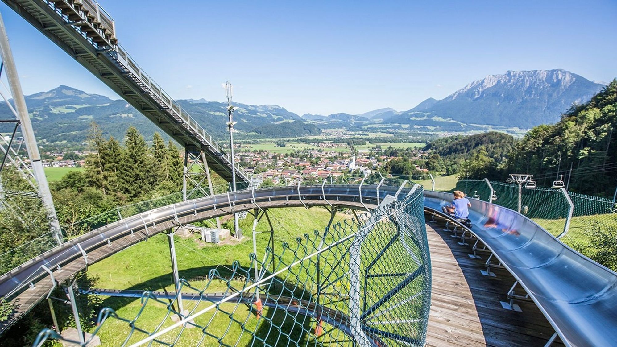 Op de avonturenberg Oberaudorf-Hocheck vind je een van de spectaculairste zomerrodelbanen van Duitsland. Met een lengte van 1.100 meter en 's werelds enige 360-graden supergyro biedt deze rodelbaan puur glijplezier voor het hele gezin.