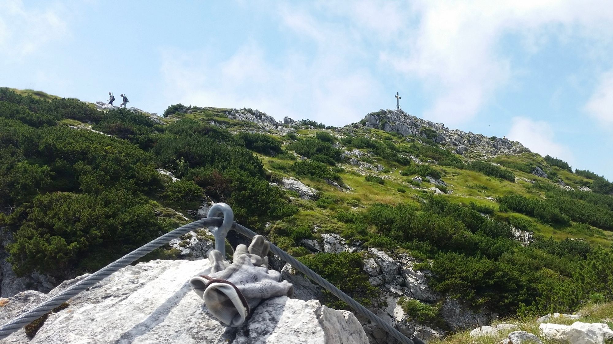 De Schmidkunzweg op de Hörndlwand, bekend om zijn gevarieerde klimroutes en solide gesteente, is een toegankelijke via ferrata. De tocht start bij de parkeerplaats bij Seehaus en voert via een steile klim van een uur door een schaduwrijk bos naar de Branderalm, gevolgd door nog 45 minuten naar de Hörndlalm. Vanaf daar leidt het pad naar de voet van de wand, waar de klim begint met afwisselend wandel- en klauterterrein, inclusief enkele uitdagende passages (III+). Na een afwisselende en goed gezekerde klim bereiken we de oostelijke top van de Hörndlwand, waarna we over de graat de overige topkruizen beklimmen. De afdaling via het Ostertal en Branderalm terug naar Seehaus duurt ruim twee uur.