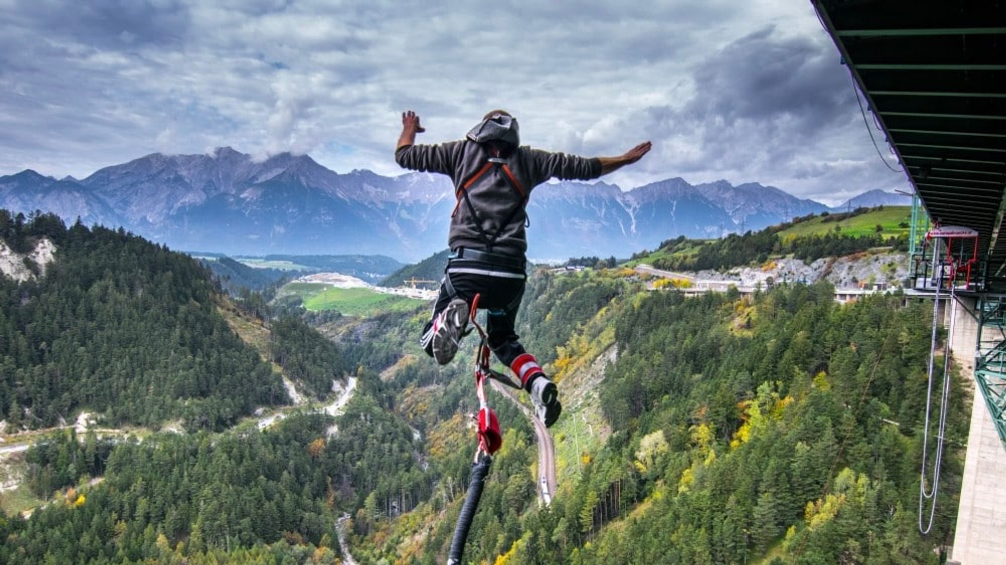 Net ten zuiden van Innsbruck ligt de 777 meter lange, 192 meter hoge Europabrücke. Tot 1972 goldt deze brug als hoogste van Europa. En wat kun je doen met hoge structuren, zoals bruggen? Eraf springen!