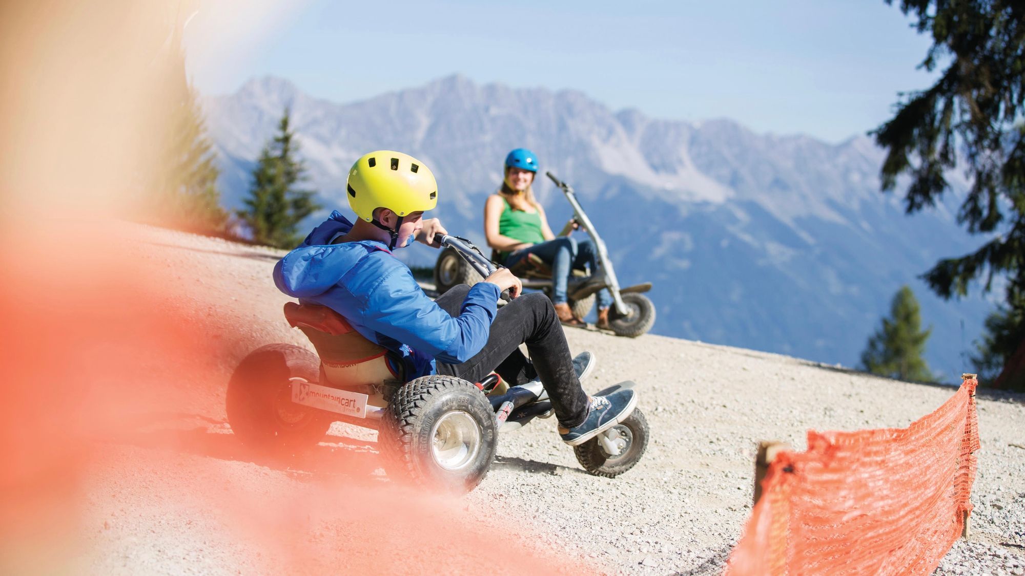 Op de Muttereralm kun je in een kart de berg afsuizen. Klink al vet, toch?