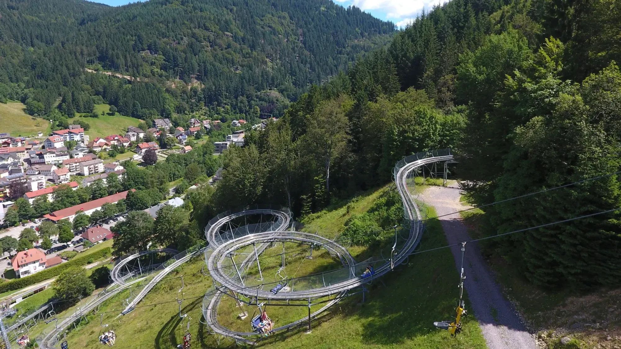De Hasenhorn rodelbaan in Todtnau is een van de meest opwindende en spectaculaire rodelbanen in Duitsland. Met een lengte van 2,9 kilometer biedt deze baan een onvergetelijke rit vol bochten, sprongen en snelle stukken, allemaal te midden van het prachtige landschap van het Schwarzwald. De rodelbaan begint op de top van de Hasenhorn, die je gemakkelijk bereikt met de stoeltjeslift vanuit het dal. Eenmaal boven aangekomen, stap je in het rodelkarretje en zoef je naar beneden. De baan is goed beveiligd en geschikt voor alle leeftijden, met rodelkarretjes die uitgerust zijn met handremmen, zodat je de snelheid zelf kunt aanpassen.