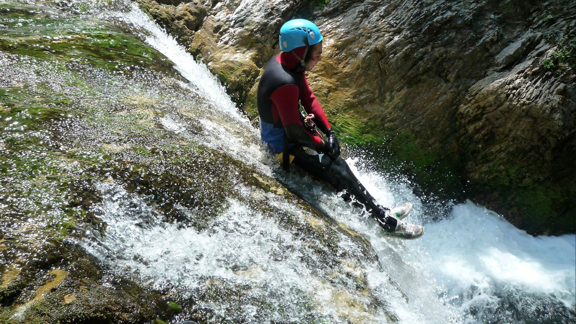 Deze route is ideaal voor wie voor het eerst kennis wil maken met canyoning. Je volgt onder begeleiding van een gids een traject vol natuurlijke waterglijbanen, lage sprongen en verrassend smalle passages. In het tweede deel van de tocht wandel je door een diepe kloof waar de rotswanden tot meer dan 100 meter boven je uittorenen. De route is toegankelijk, maar het blijft een sportieve activiteit waarbij je nat en actief bezig bent.