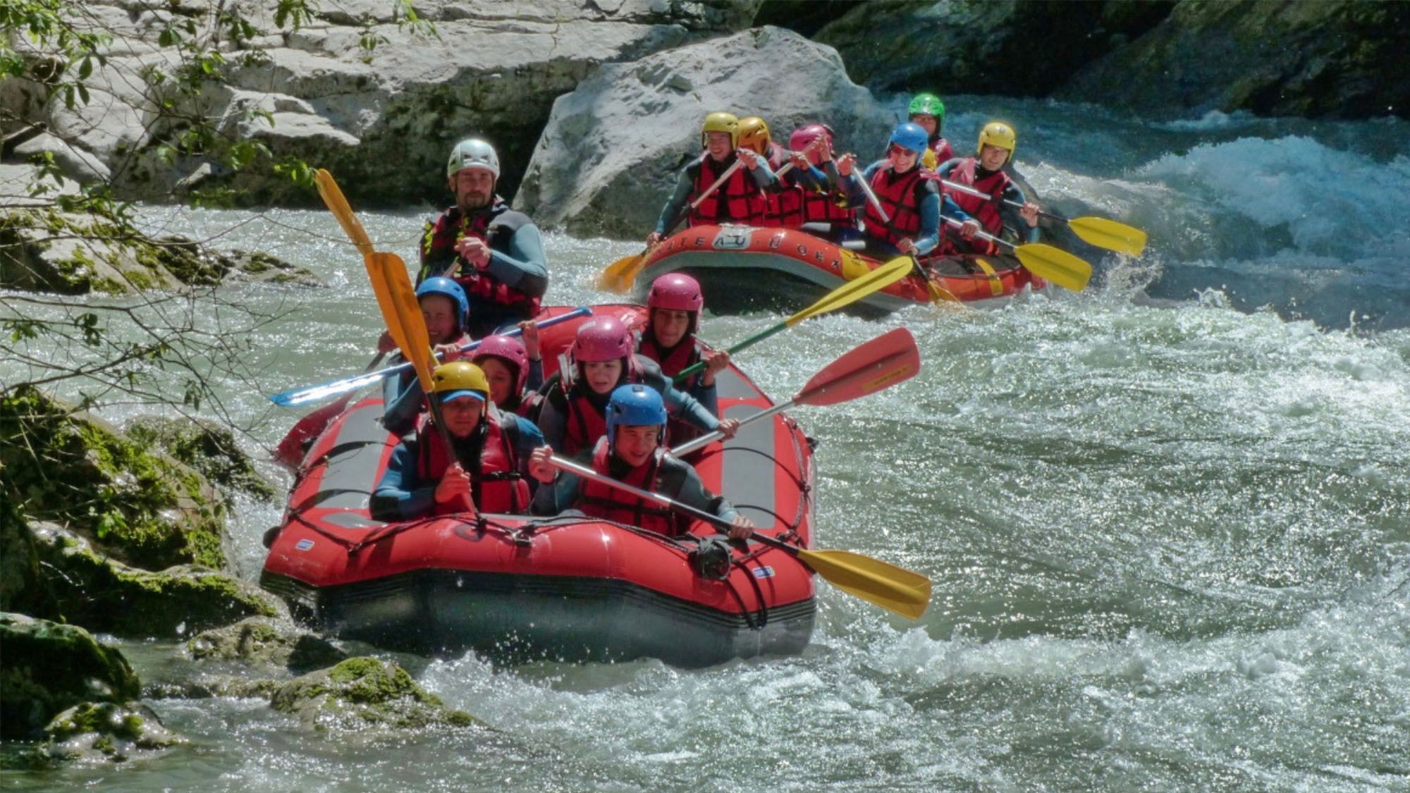 Een van de populairste manieren om de rivier te verkennen is per raft. Tijdens een begeleide tocht vaar je van Saanen (Berner Oberland) naar Château-d’Œx, een traject van ongeveer 15 kilometer. Onderweg doorkruis je twee imposante kloven: de Gorges du Vanel (klasse 3) en de Gorges de Gérignoz (klasse 4). De route is toegankelijk voor iedereen vanaf 10 jaar en biedt een mix van rust en adrenaline, met afwisselende stukken wilde rivier en rustige passages.