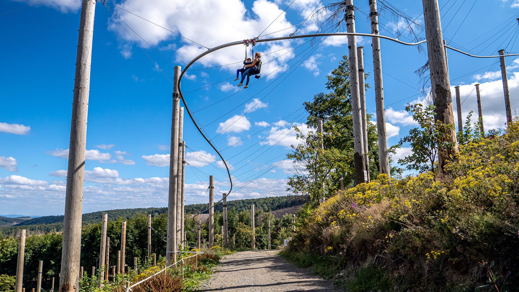 De Fly-Line van Erlebnisberg Kappe is een gemoedelijke, toegankelijke tokkelbaan voor volwassenen en kinderen. Verwacht hier dus geen adrenalinekick!