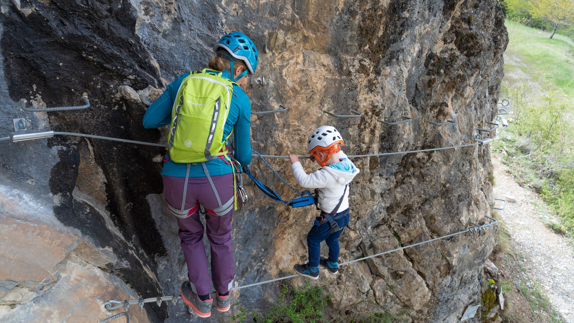 Via ferrata’s lijken een ideale sport om met kinderen te doen maar elk jaar leveren ernstige ongelukken het bewijs dat je via ferrata’s niet moet onderschatten. De dempende werking van een via ferrata set werkt pas vanaf 40 kilo. Ook zijn kinderen lang niet altijd in staat om in stressvolle omstandigheden goed en veilig te handelen. Daarom is het van belang om jonge kinderen te zekeren, dus met een bergsporttouw en zekeringsmateriaal. Als je hier geen kennis van hebt, doe dan niet zomaar wat. In elk gebied met via ferrata’s bieden gidsenbureaus vaak relatief goedkope instructiemiddagen aan. Zo kun je veilig kennismaken met deze sport. Nog een paar tips: