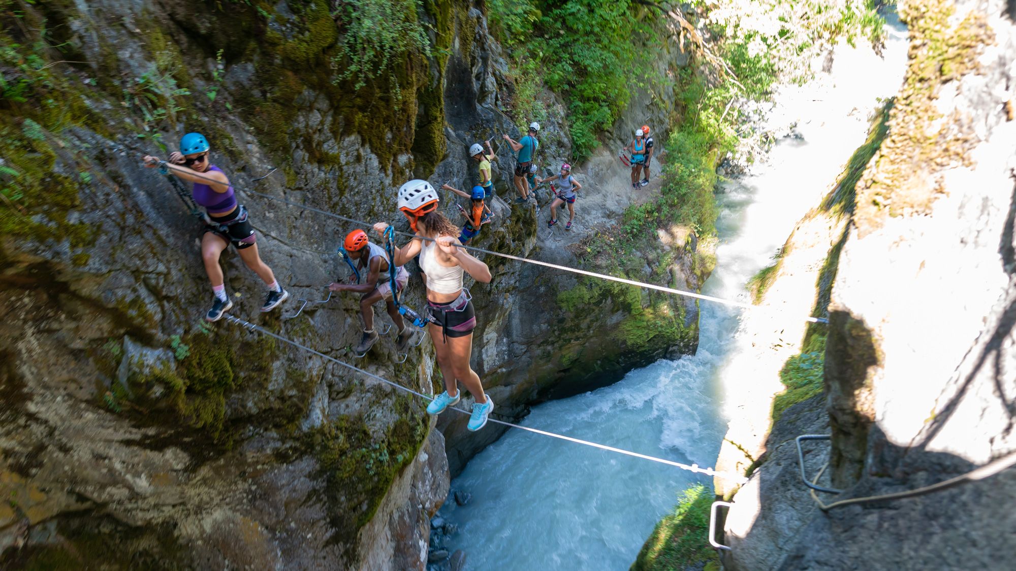 Maar het is vooral het tweede deel van deze via ferrata welke echt de moeite waard is. De kloof wordt erg smal en via een spannende touwbrug klim je van de ene naar de andere kant, om via een zeer steile traverse weer langs een vastgeklemd rotsblok weer van zijde te wisselen. Uitdagend, spannend en geweldige natuurschoon. Voor dit deel van de via ferrata is wat ervaring zeker handig, ook is dit deel voor veel kinderen te zwaar!