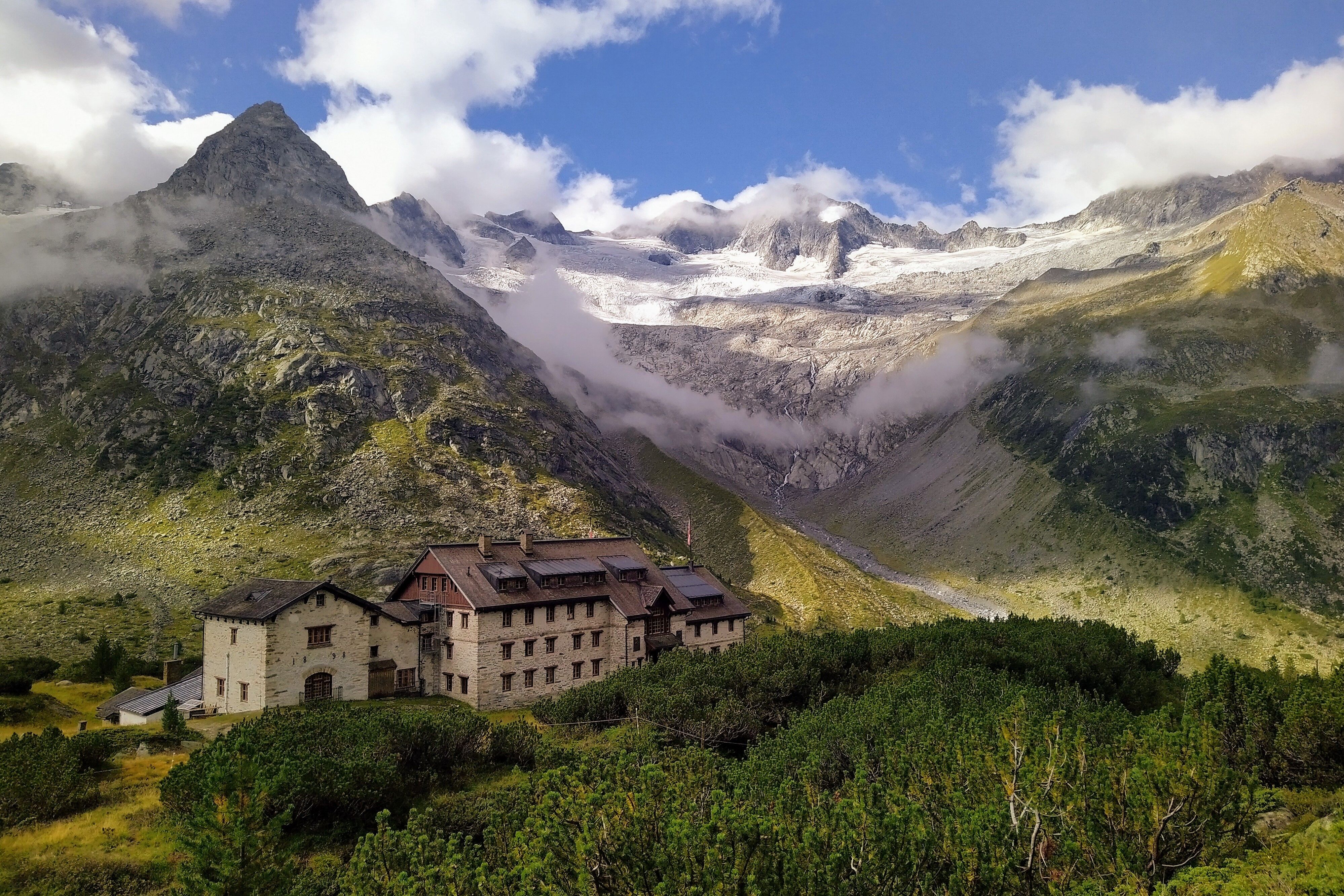 Na een goede nachtrust op een redelijk oud matras en een iets te volle maag van het uitgebreide ontbijtbuffet stappen we de deur uit bij de Alpenrosenhütte. Eerst genieten we nog van het uitzicht en halen we een paar diepe teugen frisse berglucht, maar dan is het tijd om te vertrekken. Ons doel was om de 1000 hoogtemeters die voor ons liggen in een flink tempo te overmeesteren zodat we in de middag genoeg tijd zouden hebben om af te dalen. Na ongeveer 30 minuten komen we bij de Berliner Hütte aan. Een overnachting in deze atypische berghut is eigenlijk ook een must. Van buiten ziet de hut er al majestueus uit, zeker in combinatie met het schitterende uitzicht op de vergletsjerde Zillertaler Alpenhoofdkam, maar bij binnenkomst in de in 1879 gebouwde hut waan je je in een paleis. We treffen een imposante hal aan met in het midden een kroonluchter en een schitterende houten trap naar de eerste verdieping. De eetzaal ziet er net zo indrukwekkend uit. Een uitgebreide pauze was mooi geweest, maar helaas moeten we door.