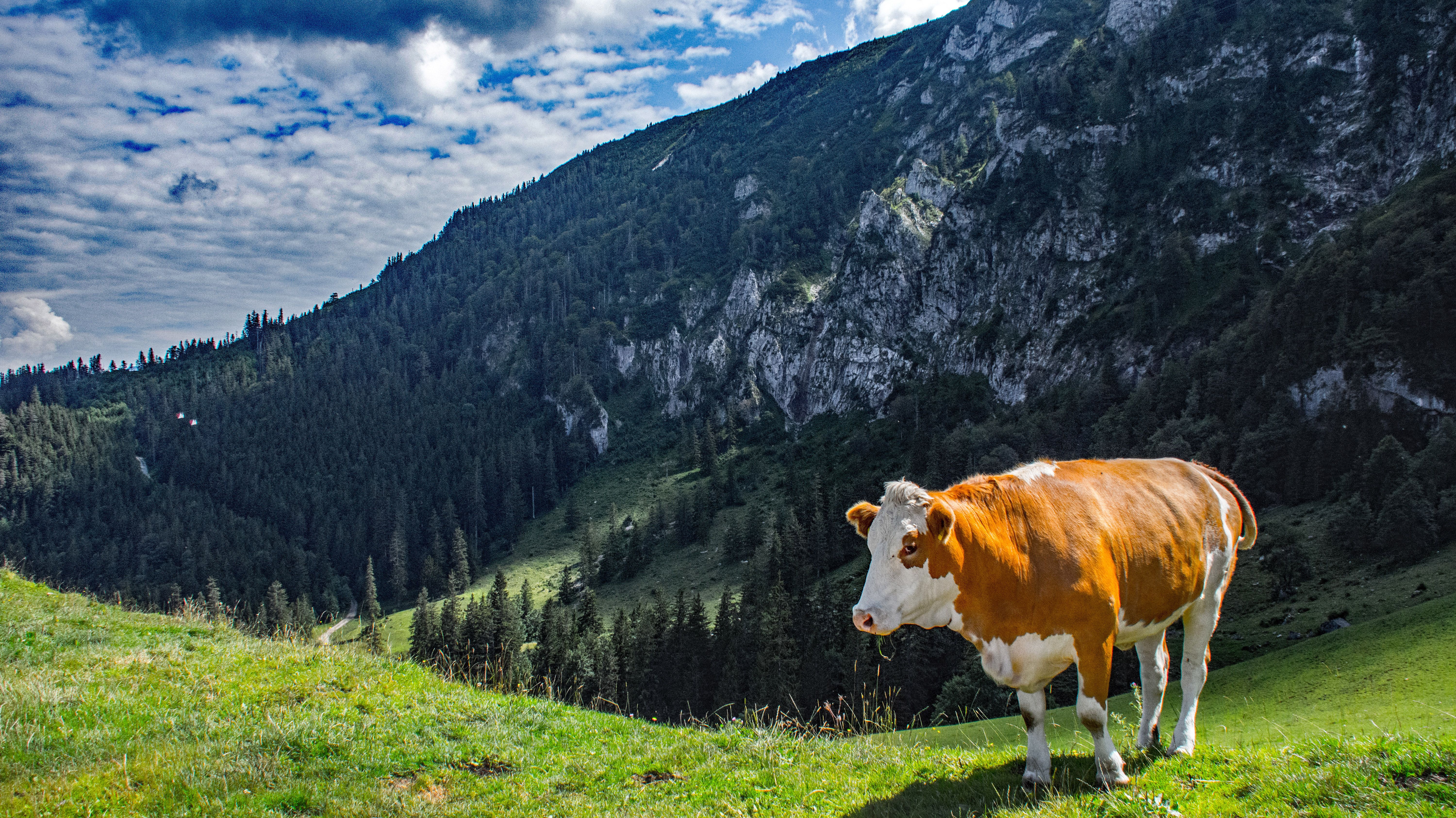 Zodra je het bos uitkomt, kom je direct terecht in een typisch Alpenlandschap. Koeien lopen vrij rond, hun bellen luid rinkelend. Rond het middenstation vind je een aantal berghutten, waar je lekker uit kunt rusten of even iets te eten kunt bestellen bij een ober in Lederhosen of Dirndl. Hier krijg je ook voor het eerst mee hoe hoog je eigenlijk al geklommen bent, met een eerste blik op het Beierse laagland en de grootse Chiemsee op de voorgrond.