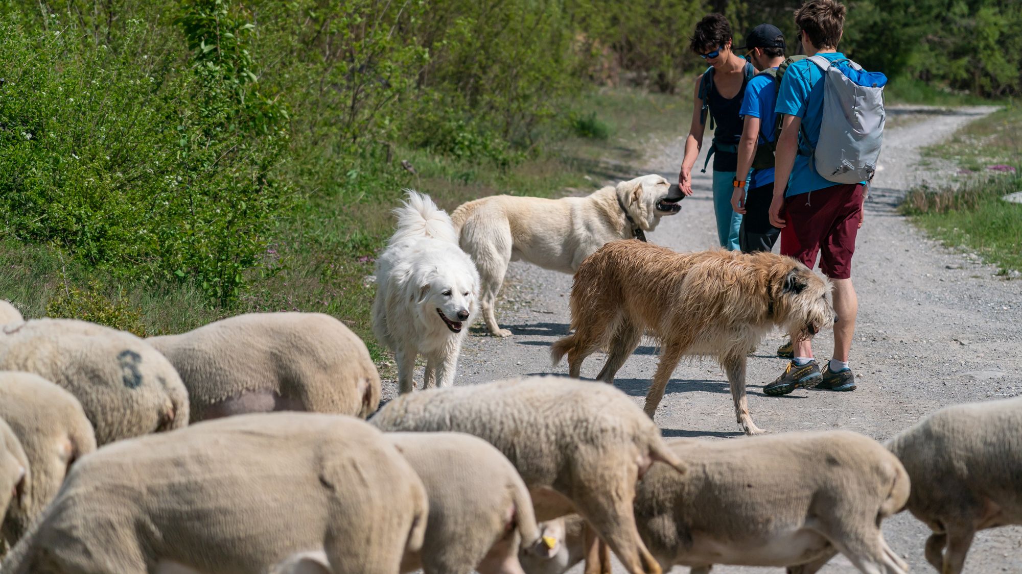Deze grote honden horen bij de schaapskuddes. Rassen zoals de Pyrenese berghond of de Berghond van de Maremmen en Abruzzen hebben een duidelijke taak: de schapen tegen al het mogelijke gevaar beschermen. In de praktijk betekent dit vooral: beschermen tegen de wolf en beer. Net als in Nederland heeft de wolf in de Alpen opnieuw een zeer succesvolle voet/poot aan de grond gekregen. En de wolf is natuurlijk een gevaar voor de schaapskuddes die voorheen zonder beschermingen over de alpenweiden dwaalden. De grote en sterke berghonden zijn, mits goed ingezet, een adequaat antwoord om wolven op afstand te houden.