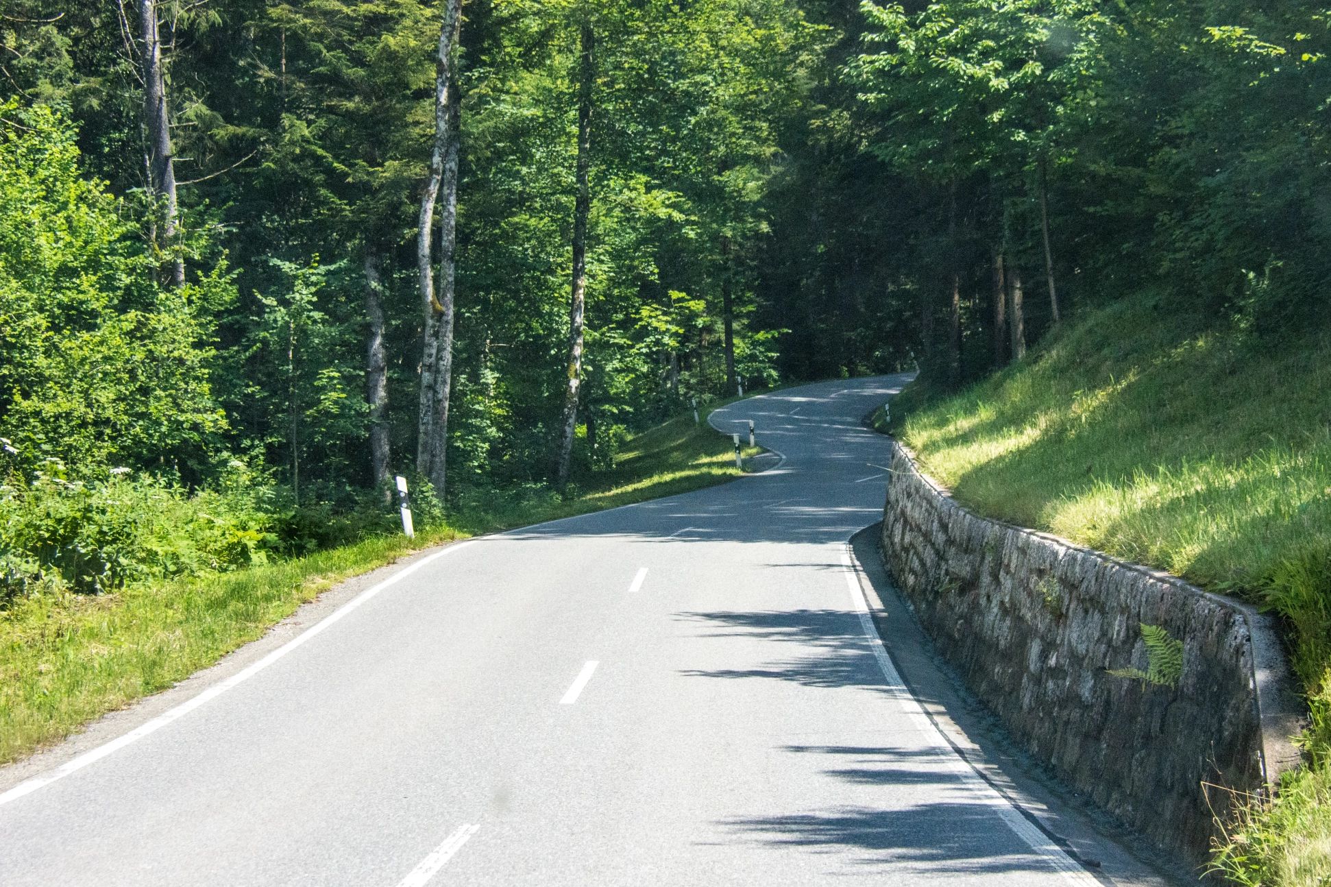 Er zijn maar weinig Alpenwegen die rechtuit gaan. Vaak zitten ze vol met flauwe bochten. Deze flauwe bochten rijden bijna vanzelf. Zo kun je deze bochten het beste nemen: leg je beide handen op het stuur, ongeveer op tien voor twee, of nog iets lager als dat kan, leg je duimen op het stuur en kijk ver vooruit op de weg. Je zult merken dat je op deze manier eigenlijk vanzelf de bochten rijdt. Probeer soepel te rijden zonder bij te hoeven remmen.