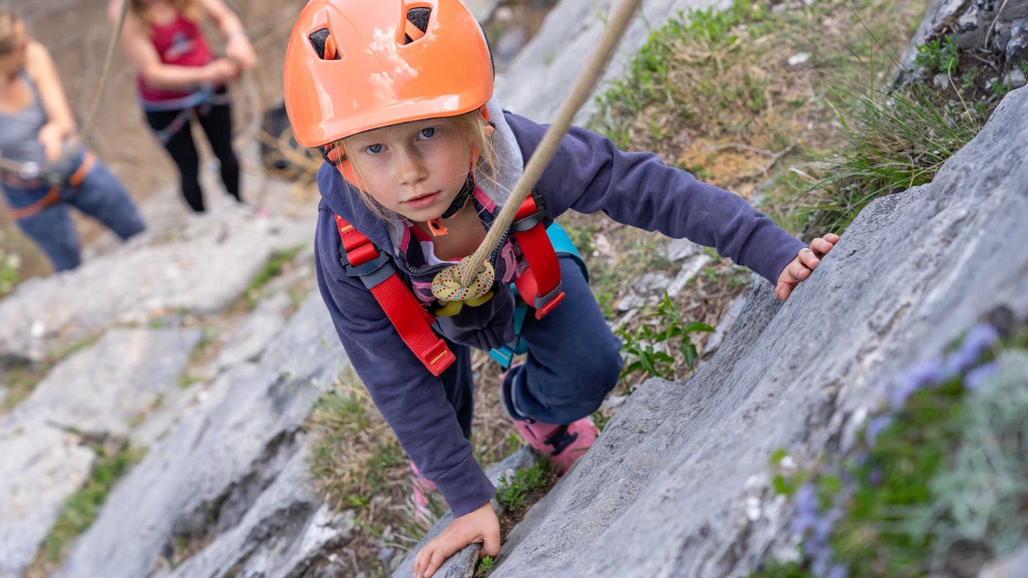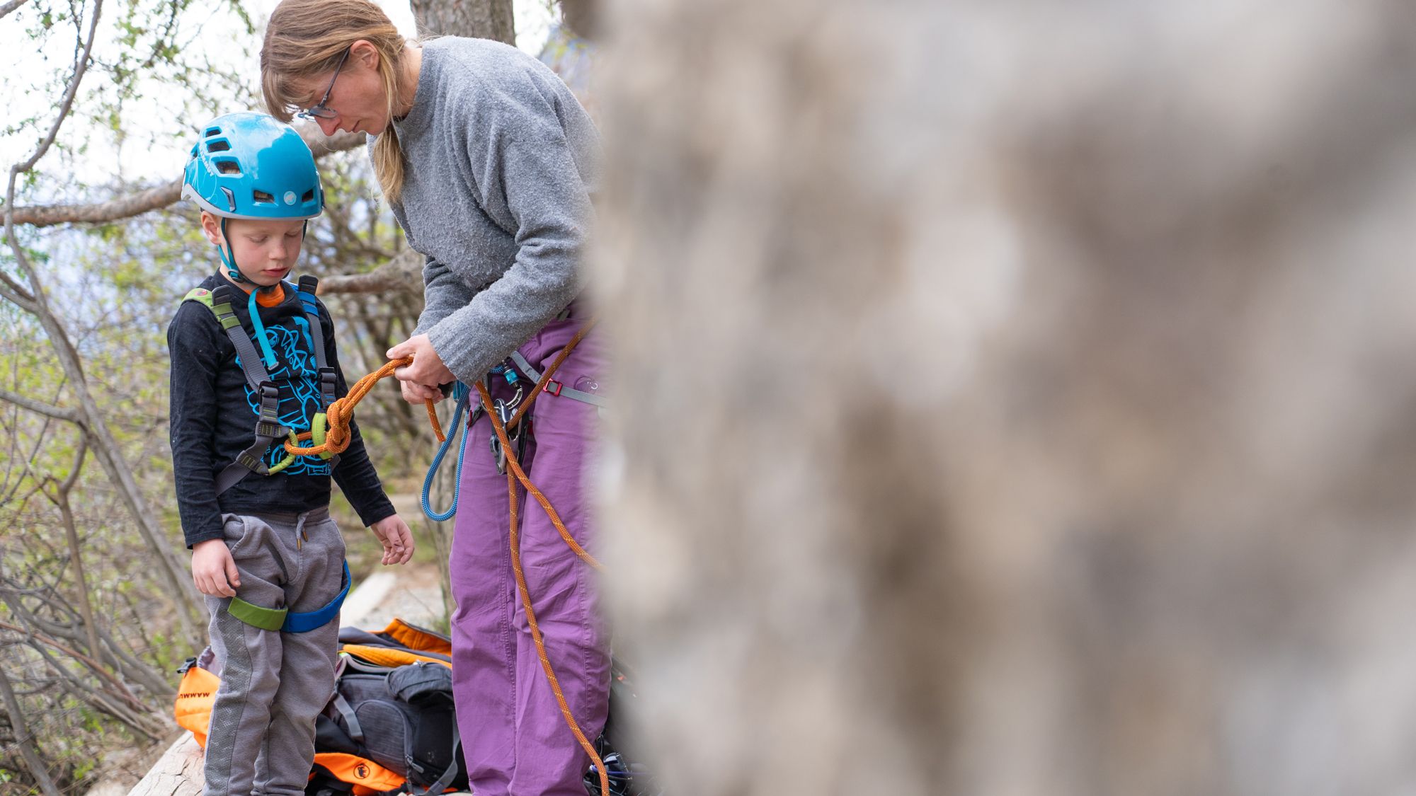 De eerste stap, en meteen van enorm belang, is het veilig kunnen zekeren. Als jij als volwassene niet veilig kunt zekeren (en gezekerd worden, want jonge kinderen kunnen geen volwassene zekeren) dan houdt het hele verhaal eigenlijk meteen op. De enige manier om veilig te rotsklimmen zonder zelf te kunnen zekeren is met een berggids of gediplomeerde kliminstructeur. Je kunt veilig leren zekeren en voorklimmen in klimhallen en bij klimverenigingen. Het is allemaal geen rocket science maar het is wel belangrijk om goed te kunnen én om de gevaren goed in te kunnen schatten.