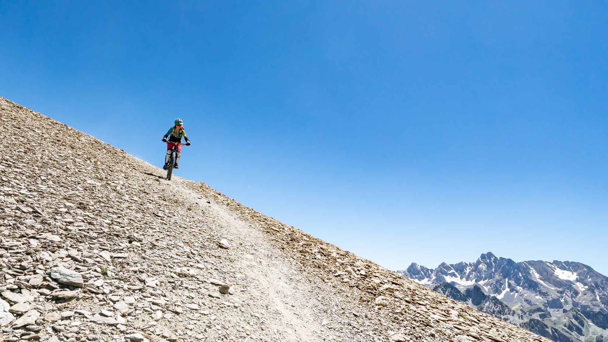 Vanaf de top wijst de afdaling voor zich. Een mooi effen pad met heerlijke switchbacks brengt je snel naar beneden. Een echte flowy trail. Alleen rond de 2600 meter volgt een technisch pittiger stuk, wat niet heel lang is. Daarna rij je door een mooie kloof over een pad dat voor mountainbikers gemaakt lijkt te zijn. Eenmaal in het dal klim je een klein stukje door naar la Chaurionde waar je een leuk weggetje vindt dat je terugbrengt naar Ceillac. Als je energie over hebt, klim dan door naar Lac Miroir om hier wederom weer een geweldig mooie single te vinden.