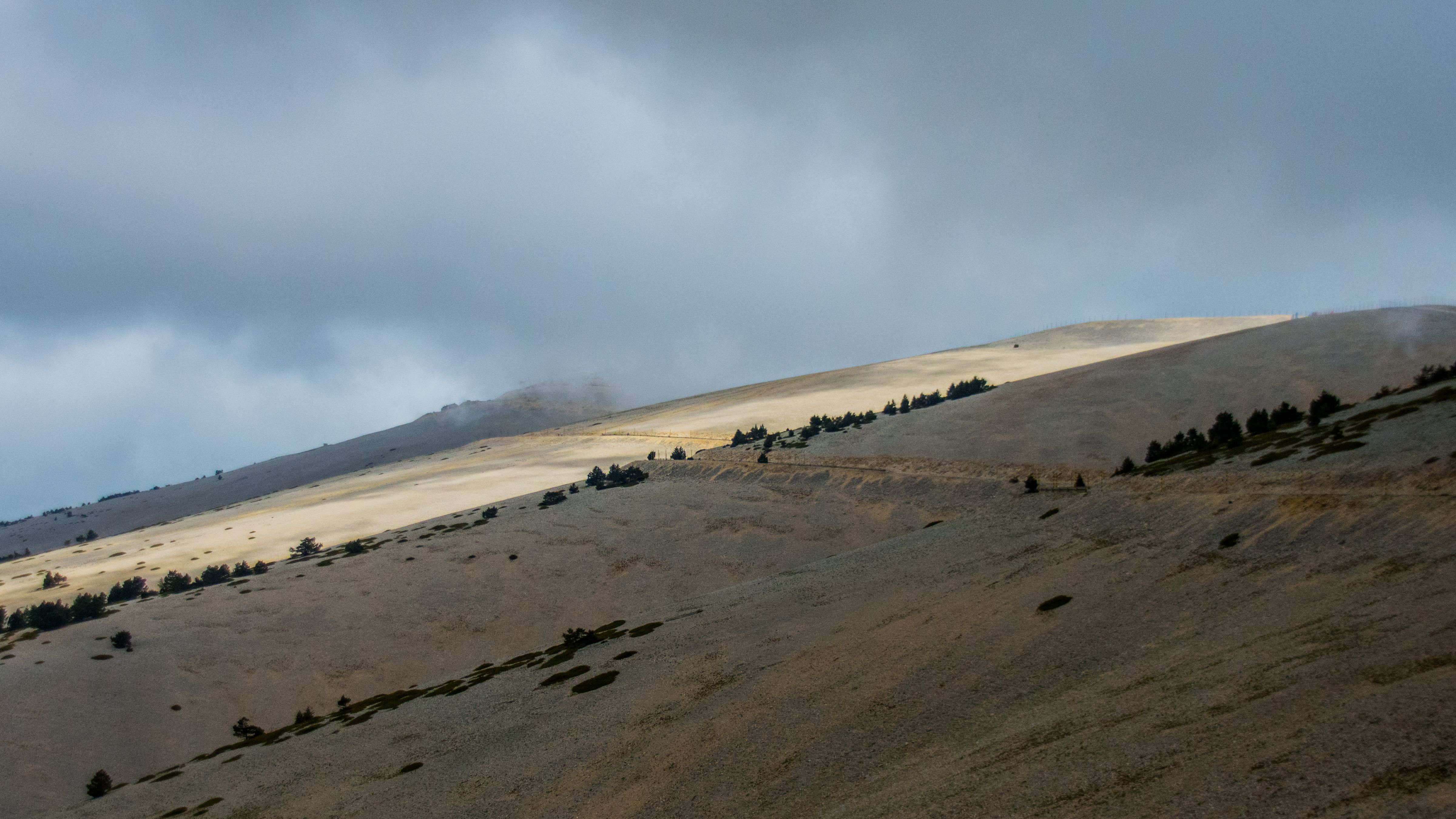 Maar als je denkt dat het stuk ónder de boomgrens een feestje is, dan kom je ook van een koude kermis thuis. Eerder het tegenovergestelde eigenlijk. De hitte van de Provence blijft namelijk hangen in dit bos wat het niet alleen een zweterige bedoening maakt, maar ook een ideale habitat voor hele irritante vliegen. En als je denkt dat dat alles is, dan heb je ook nog eens de kans om in een apocalyptische wolkbreuk terecht te komen, die met enige regelmaat losbarsten boven de berg.