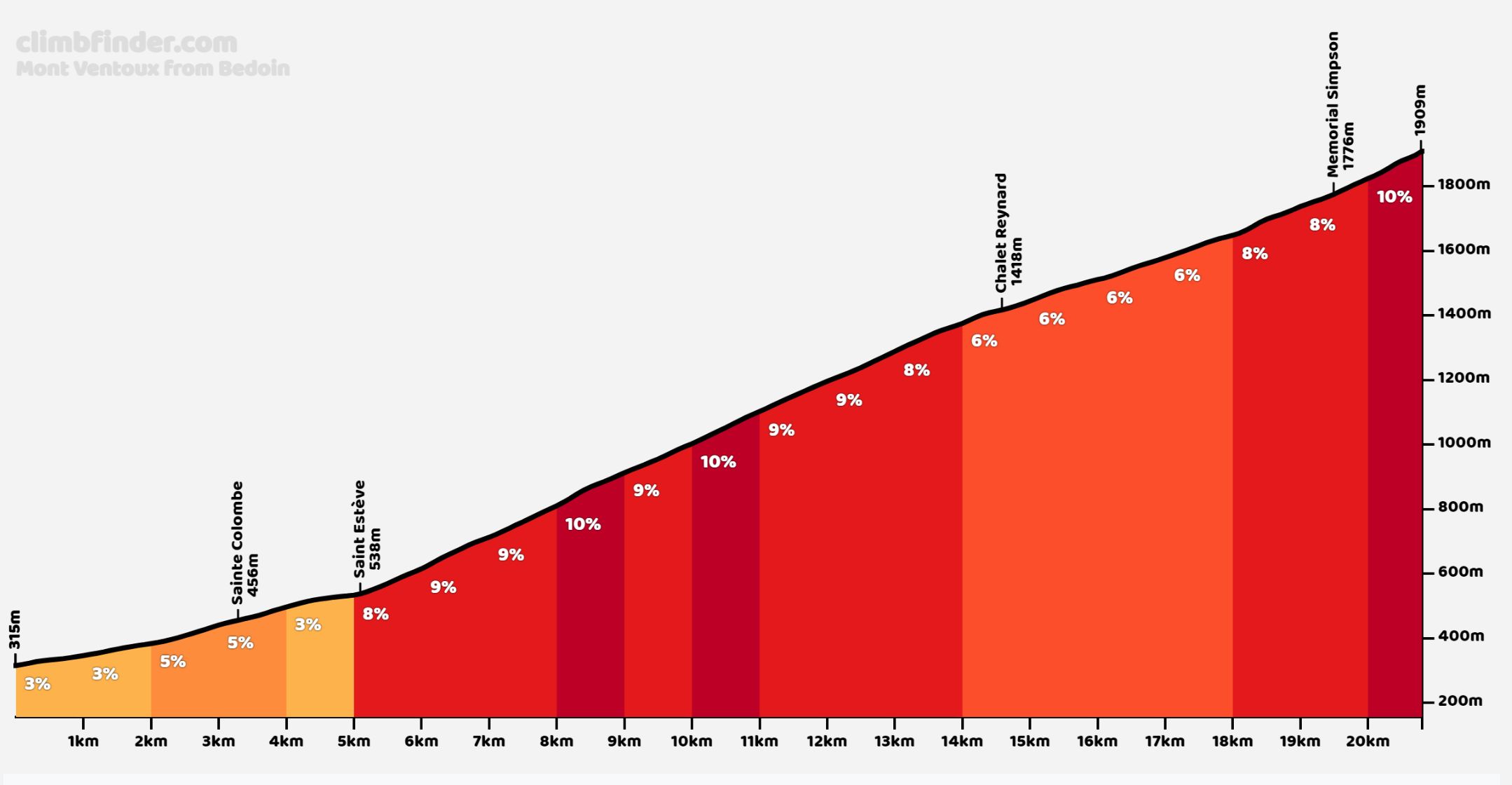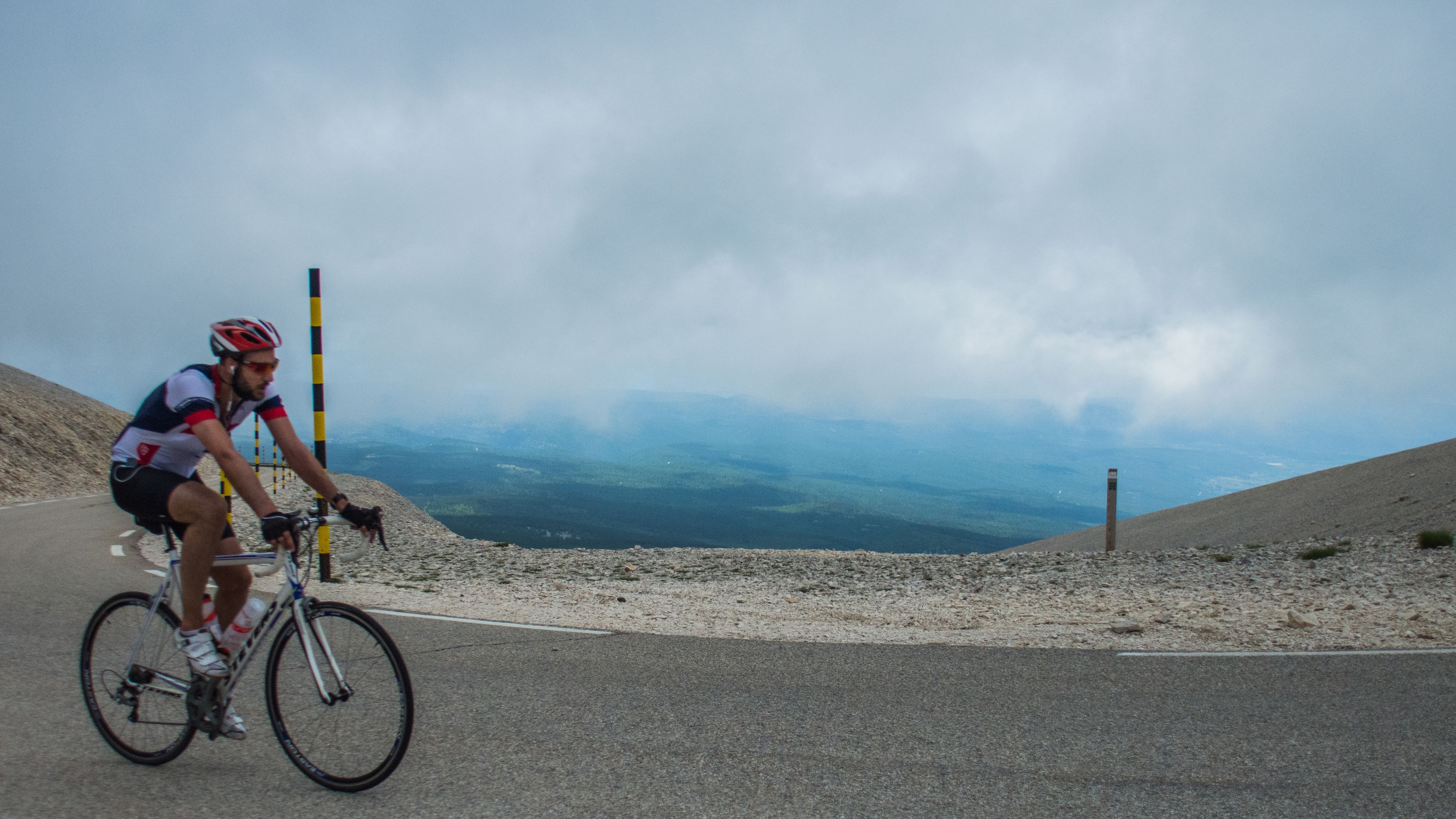 Een dikke anderhalve kilometer voor de top, kom je het monument van Tommy Simpson tegen. Vanaf dat moment gaan de percentages ook weer de lucht in. Maar houd vol, want de toren komt steeds dichterbij. Ellende is wel, dat de laatste kilometer nog even tegen 10-11% is en je echt nog even op de pedalen moet om daar te komen…