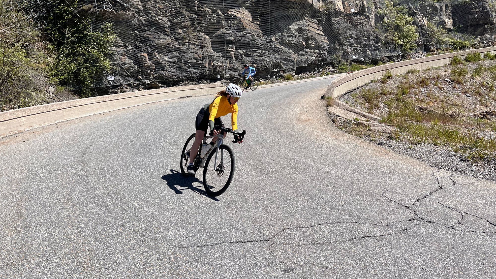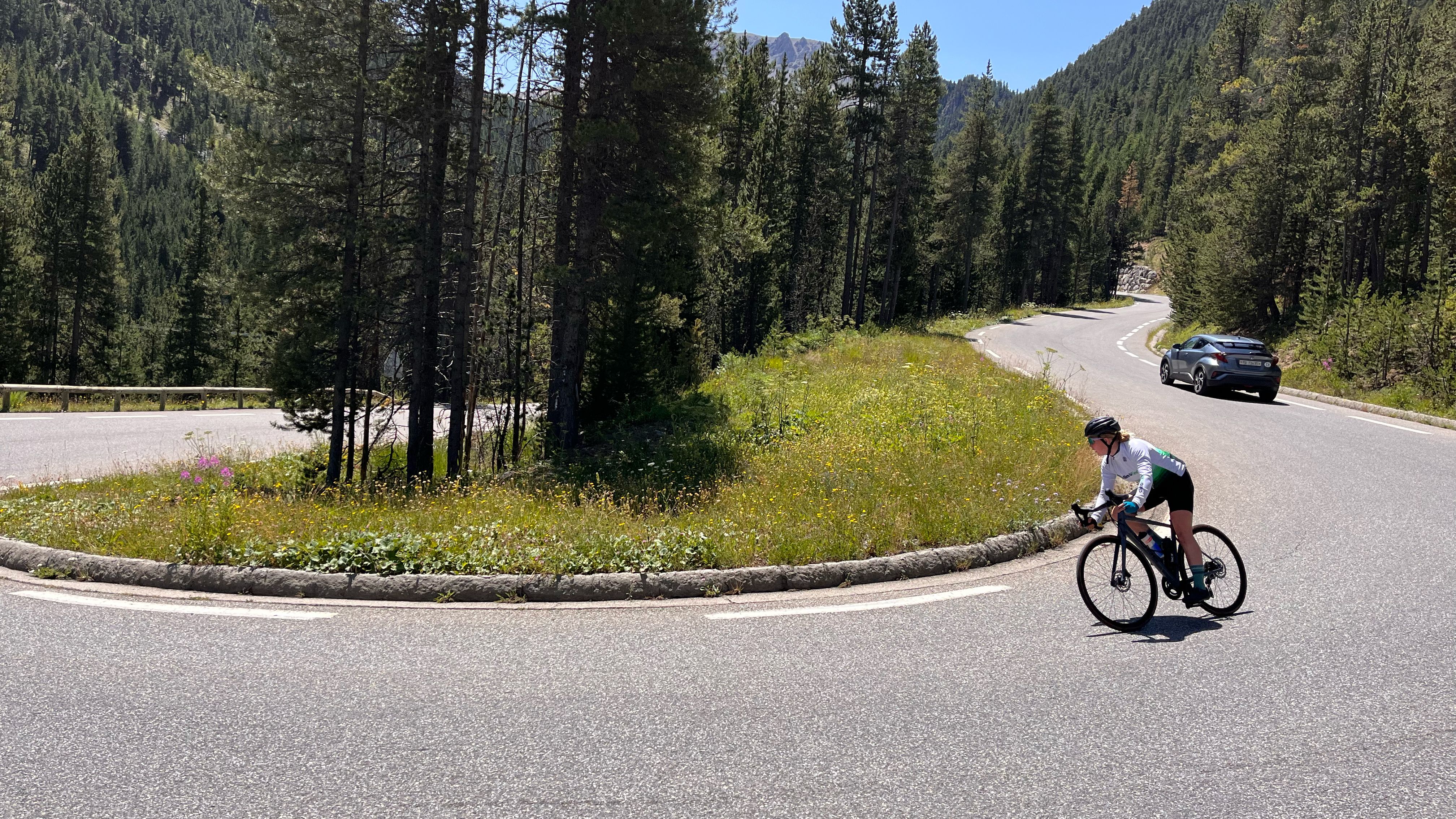 Afdalen in de bergen kan behoorlijk snel gaan, dus wees je altijd bewust van je snelheid en pas deze aan de omstandigheden aan. Als je het gevoel hebt dat je te snel gaat om veilig te kunnen reageren op onverwachte situaties, vertraag dan tijdig. Houd ook rekening met andere weggebruikers, zoals auto’s, wandelaars en andere fietsers. Enne, probeer geen profwielrenner te spelen. De snelheden die je in de Tour de France ziet zijn geen goed idee voor de gemiddelde wielertoerist. De vele ernstige ongelukken elk jaar op de Mont Ventoux en andere populaire bergcols zijn hier het bewijs van.