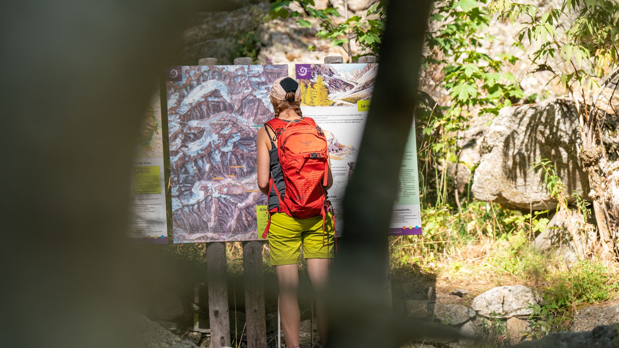Volg in Aielfroide de bordjes Sélé (na de parkeerplaats naar links). Hier loop je door een fijn en koel lariksbos omhoog. Overal zie je smalle paadjes van het grote pad afslaan… Dit zijn door rotsklimmers uitgesleten paden, neem deze niet. Volg gewoon het brede pad. Na ongeveer 700 meter kom je langs een indrukwekkende hangbrug. Deze gaat naar de Claphouse vallei. Laat deze brug links liggen en loop door. Het pad wordt steeds steiler en je klimt langzaam boven de boomgrens. Vergeet niet te genieten van het mooie dal onder je met de kolkende rivier.