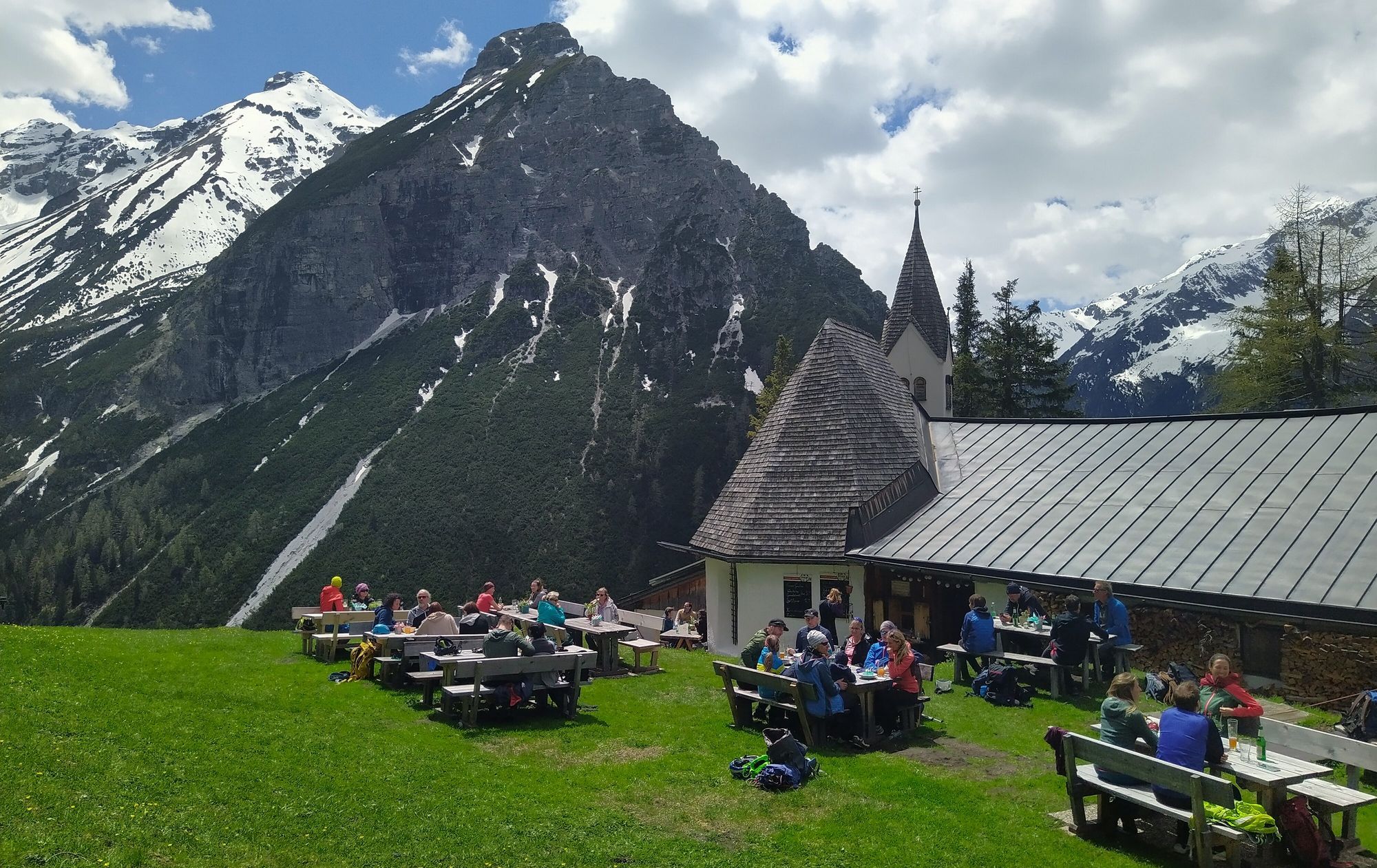 Bij de uitstap van de klettersteig word je beloond op een schitterende rustplek bij St. Magdalena, een bedevaartskerk met een “Jausenstation” voor een hapje en een drankje met een heerlijk uitzicht op de omringende bergen. Vanaf hier neem je het wandelpad terug richting het dal.