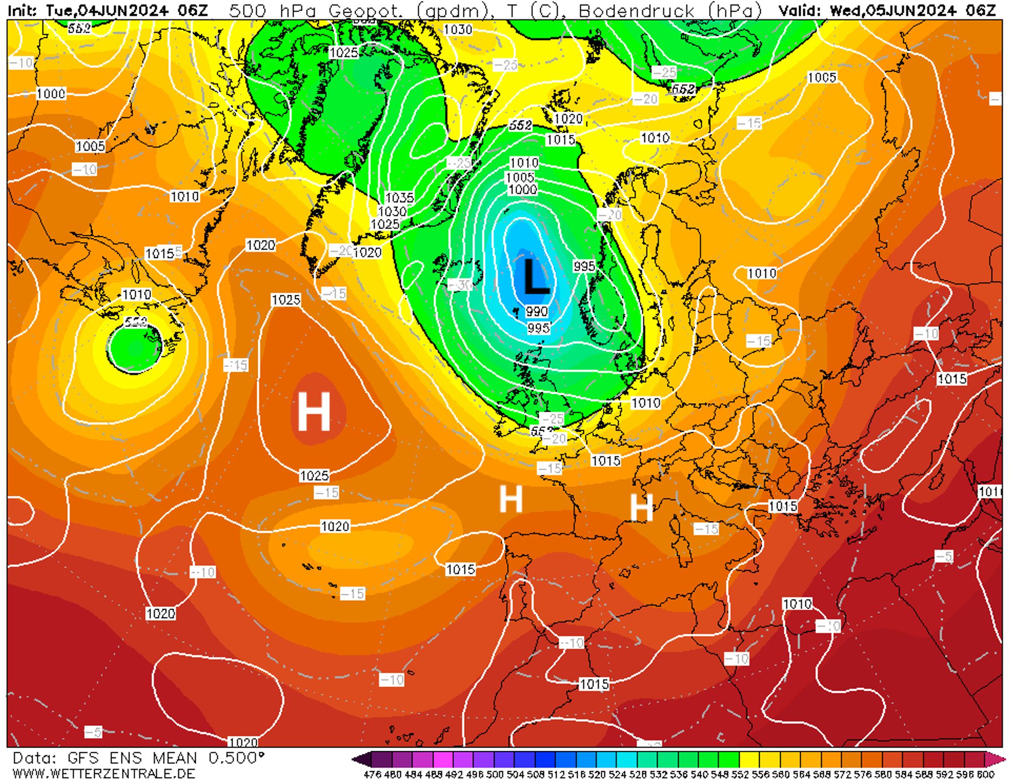 Vanaf het weekend neemt de kans op zware buien toe. Lagedrukgebieden gaan zich weer nestelen boven het Middellandse Zeegebied terwijl er ook een lagedrukgebied verschijnt boven Scandinavië. Zeer warme lucht vanuit het zuiden botst dan op koelere lucht uit Noord-Europa, waarschijnlijk precies boven de Alpen. Hierdoor is er weer erg veel regen mogelijk.