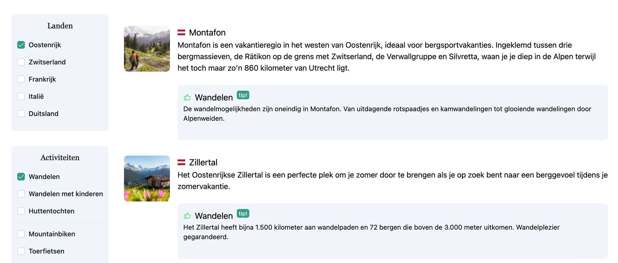 Verder is er een zoekmogelijkheid gekomen en je kunt voortaan filteren op regio’s en activiteiten. Zoek je bijvoorbeeld klimgebieden in Frankrijk, dan kun je op de homepage selecteren ‘Ik wil klimmen in Frankrijk’ en je krijgt een selectie van goede klimgebieden. Deze informatie wordt de komende periode nog aangevuld en we zijn ook nog bezig om nieuwe regio’s toe te voegen.