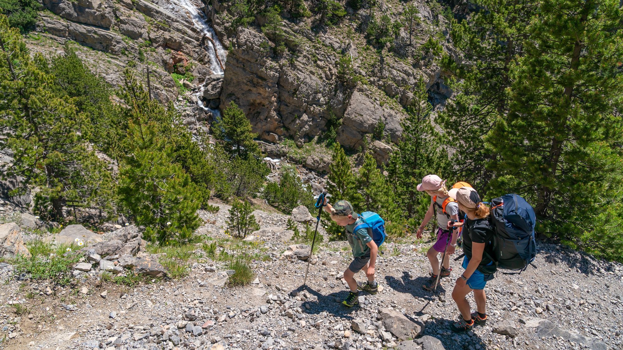 Vanuit Lauzet steek je de Bouchouse-rivier over via een bruggetje. Daarna volg je het karrespoor en de bordjes naar Lac de l’Ascension. Het pad wordt steeds mooier naarmate je vordert en nadat je 120 meter ben afgedaalt na het karrespoor. Je loopt door bloemrijke Alpenweides en klimt vervolgens door een fijn naaldbos, waar je in de vroege zomer een prachtig uitzicht hebt op verschillende watervallen. Na deze klim, via mooie kalkplaten, bereik je het Lac de l’Ascension na bijna 700 meter stijgen. Dit grote bergmeer is adembenemend mooi.
