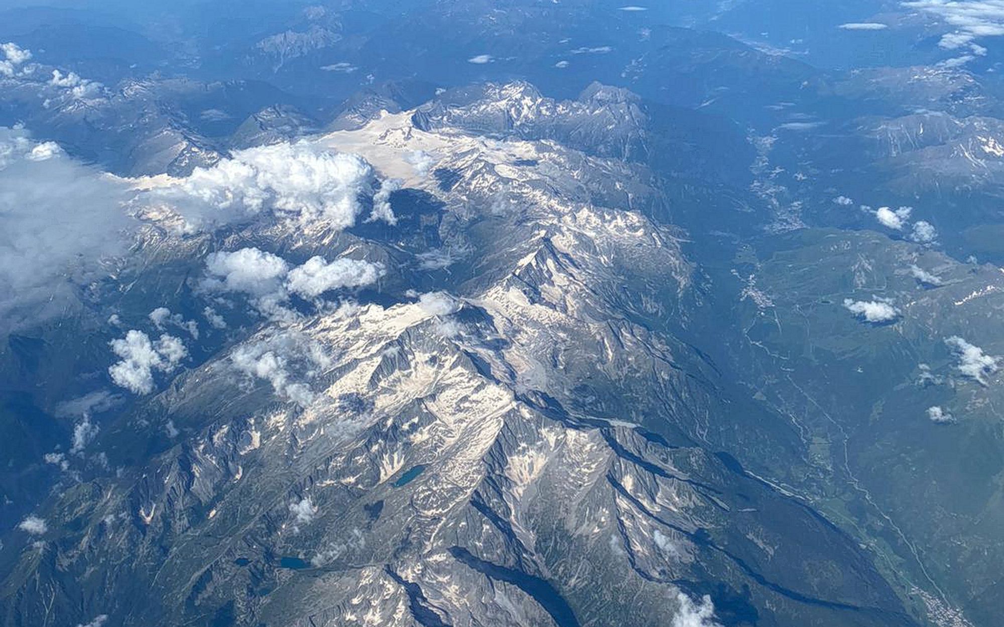 De afgelopen week stond in het teken van warmte. Daarmee loopt juli alweer flink voor op schema. In de westelijke helft van Oostenrijk (waar de meeste bergen liggen) is juli tot nu toe een tot anderhalve graad warmer dan het langjarig gemiddelde van 1991-2020. In Innsbruck ligt de daggemiddelde temperatuur met 21,9 graden zelfs bijna 2 graden hoger dan normaal. Daarmee komt het Saharastof dat afgelopen winter en lente in grote hoeveelheden neerdaalde op de gletsjers steeds meer tevoorschijn. Monique Cornelissen zag dit vanuit het vliegtuig vanochtend.