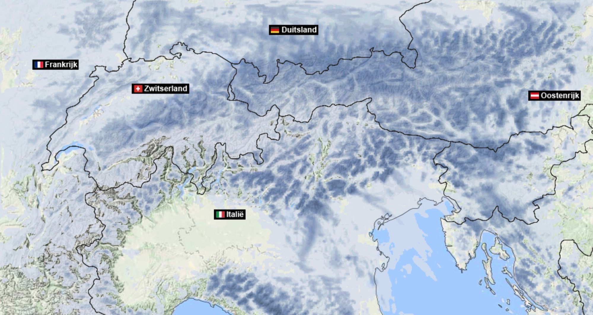 Vandaag (maandag) en morgen hebben we echter te maken met enkele buien die vooral in de middag flink kunnen uitpakken. Hoe westelijker, hoe minder hevig en talrijk de buien zullen zijn. De Franse Alpen, die het dichtst tegen het hogedrukgebied liggen, blijven misschien wel helemaal droog. Daarmee is dit de regio met het beste weer deze week.