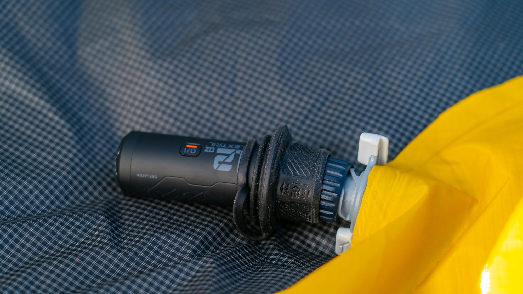 Deze pomp weegt volgens Flextail zelf slechts 33 gram, maar dat is een beetje misleidend, want dat is zonder batterij (!) en het opzetstuk dat je nodig hebt om de pomp op je mat aan te sluiten. De mijne weegt, inclusief batterij en opzetstuk, 68 gram, wat nog steeds heel netjes is qua gewicht, maar wel meer dan het dubbele!