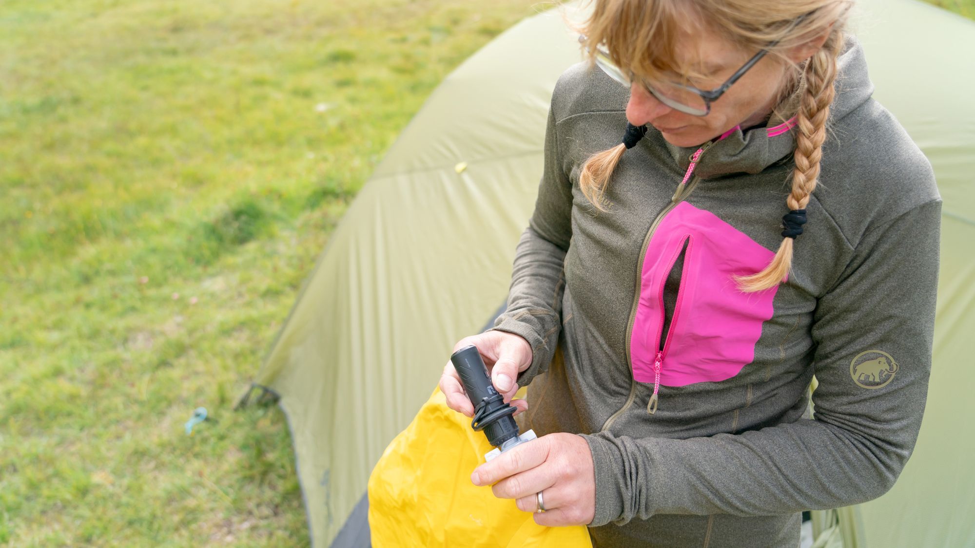 Gebruik de pomp wel in de tent, op een schone plek of ‘in de lucht’, want als je de pomp in het gras of op een stoffige ondergrond legt, zuigt deze gras en stof naar binnen, wat de levensduur van je pomp en mat niet ten goede komt. De beste methode is om je mat in de tent te leggen en het pompje daarop aan te sluiten.