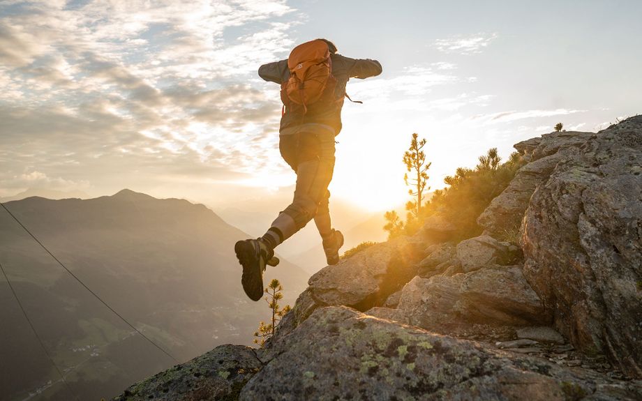 De juiste wandelschoen is je belangrijkste uitrustingsstuk in de bergen. Laat je altijd goed adviseren in een buitensportwinkel, neem je oude schoenen mee als referentie en pas met je eigen sokken. In de Alpen is een B of B/C schoen meestal ideaal voor de meeste wandelingen, tenzij je je op technischer alpien wandelterrein begeeft – dan heb je een C-categorie schoen nodig.