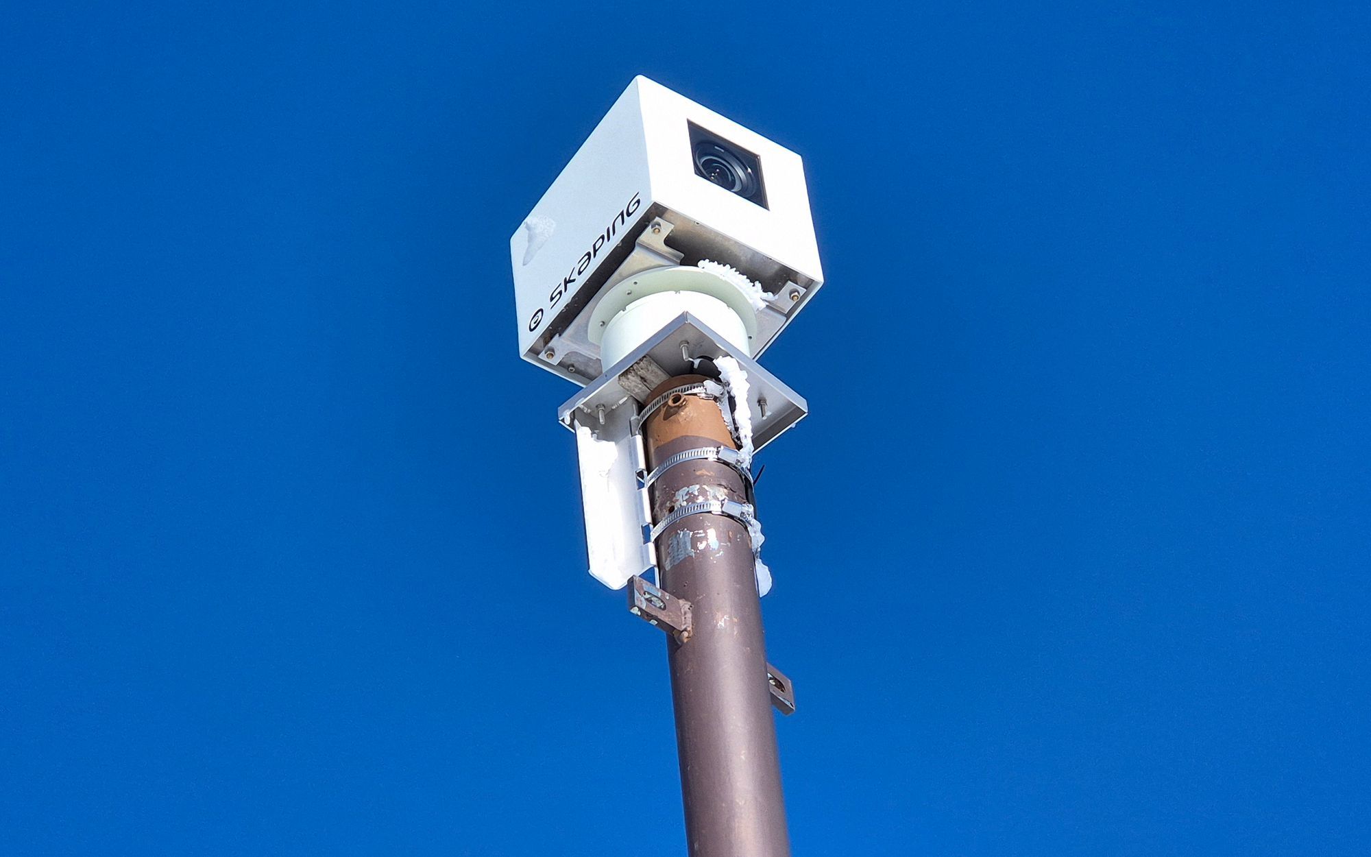 De webcam zelf zit in een water- en stofdichte behuizing (IP66 of hoger). Vaak is dat een metalen of kunststof kast met een verwarmde lenskap, zodat sneeuw en ijs er niet aan blijven plakken. Die kap is meestal ook anti-condens.