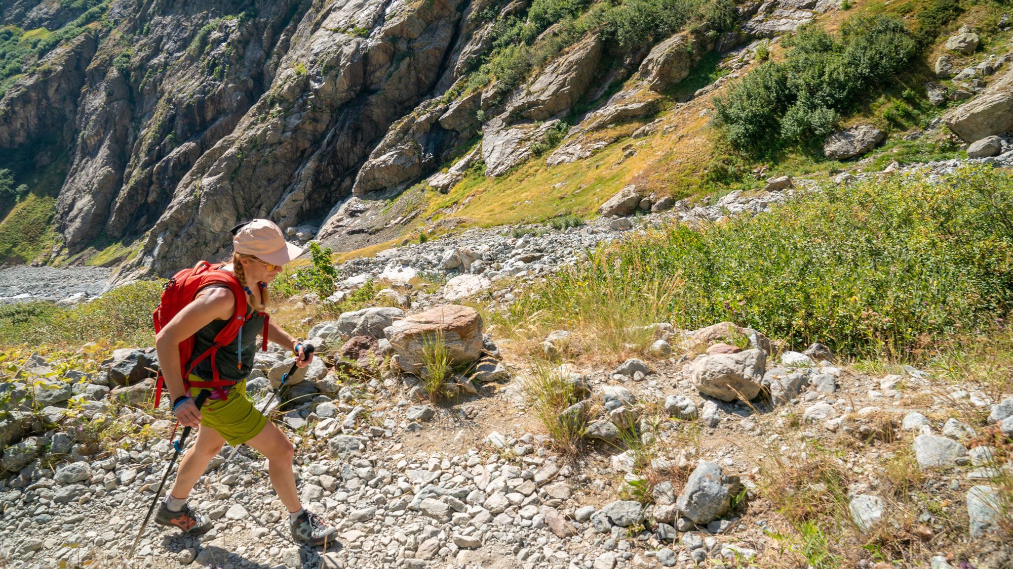 Kies ook voor schoenen die bij je activiteit (en je ervaring) passen, dat wil zeggen, hoge stijvere schoenen als je in moeilijk terrein en/of met zware rugzak loopt en eventueel lagere schoenen als de wandeling makkelijker is.