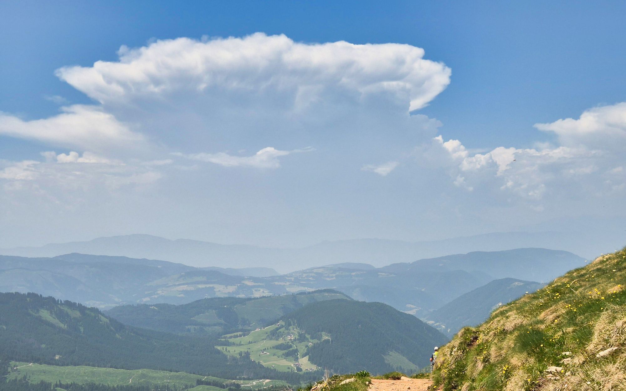 De grote weersomslag komt woensdag. In de loop van de dag ontstaan er in onstabiele lucht steeds meer buien. Die kunnen en zullen ook fel uitpakken met lokale hagel, onweer en windstoten. Donderdag is nog zo’n dag. Het lijkt in de ochtend soms wel mee te vallen, maar de lucht is zo onstabiel dat er weinig hoeft te gebeuren om stapelwolken de hoogte in te laten schieten. Als de bovenkant van de wolk dan de vorm van een aambeeld aanneemt is de bui een feit! Deze kunnen zich daarna razendsnel uitbreiden tot grotere regengebieden. Verspreid over de Alpen verwacht ik woensdag en donderdag samen zo’n 50 tot 100 millimeter regen, bij zware buien nog iets meer.